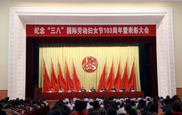 3月6日上午,为纪念“三八”国际劳动妇女节103周年,省妇联在宁卧庄宾馆大礼堂隆重举行表彰大会。省委副书记欧阳坚、省人大常委会副主任孙效东、省政协副主席张津梁、省委副秘书长刘玉生出席大会。会议由省妇联党组书记、主席韩克茵主持。