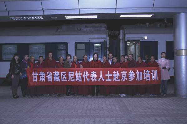 3月23日,兰州火车站站台上,人头攒动。甘南州12名尼姑代表人士今天将赴京参加全国妇联举办的藏区尼姑代表人士培训班。这是省妇联第二次组织藏区尼姑赴京参加的培训,也是省妇联认真贯彻落实《中共甘肃省委关于全力做好藏区反自焚专项斗争的意见》精神,开展藏区维稳工作的又一实实在在的重要举措。