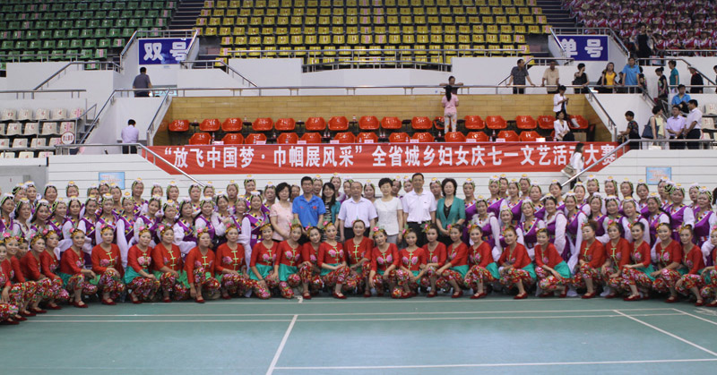 为了庆祝中国共产党成立92周年,贯彻落实省第十二次党代会关于建设文化大省的战略部署,进一步发挥农村“留守妇女阳光家园”在丰富留守妇女业余文化生活中的阵地作用,充分展示广大城乡妇女精神风貌,省妇联于6月30日在省城兰州举办了“放飞中国梦·巾帼展风采”全省城乡妇女庆七一文艺活动大赛。省人大常委会副主任李慧、省政府副省长张广智、省政协咨询员侯生华、省政协副秘书长钟进良、省体育局副局长石生泰、省妇联在兰副主席莅临活动。来自兰州、嘉峪关、金昌、武威、白银、天水、平凉、陇南、临夏9个市州的1000多名妇女参加了比赛,省城2000多名妇女代表现场观看。