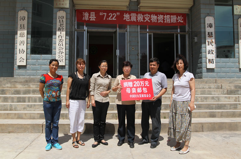 甘肃省定西市“7.22”重大地震灾害发生后,全国妇联高度关注灾区人民特别是妇女儿童的生命财产安全,第一时间向甘肃省妇联发来慰问电,向灾区受灾群众特别是妇女儿童表示诚挚的慰问,向战斗在抗震救灾牵线的广大干部和群众致以崇高的敬意和亲切的问候。全国妇联通过中国少年儿童基金会、中国妇女发展基金会紧急筹集了200万元基金和物资,为帮助灾区人民群众特别是妇女儿童抗震救灾尽一份绵薄之力,表示将继续关注并尽力支持灾区妇女群众抗震救灾、重建家园。