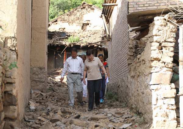 随后,康娅红一行沿着崎岖颠簸的山路,驱车2个小时,赶赴漳县受灾最严重的什川乡三条沟村,看望了受灾严重的4户困难群众,查看她们受损严重的房屋,鼓励她们要树立战胜困难的勇气和信心。