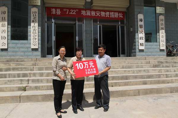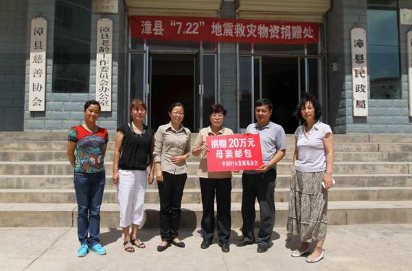 “7·22”岷县漳县交界6.6级地震发生后,受省妇联党组委托,省妇联副主席康娅红立即带领甘肃妇女儿童发展基金会和省妇联办公室的同志赶赴漳县,将全国妇联、省妇联筹集的10万元救助金和中国妇基会捐赠的价值20万元的“母亲邮包”送到灾区,并向当地党委、政府,妇联干部以及受灾群众转达了全国人大常委会副委员长、全国妇联主席沈跃跃对灾区人民的真切关怀和问候,鼓励灾区人民勇敢面对灾难,树立信心,在党委、政府的统一领导下,开展好灾后自救,搞好生产生活。