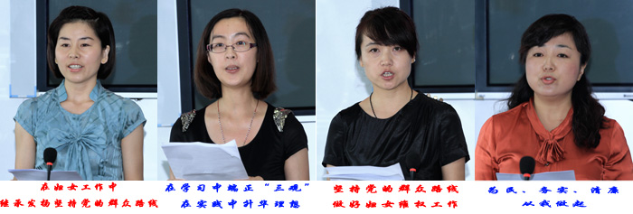 8名青年同志结合个人的理论学习、思想认识和工作,用真挚的感情、朴实的语言、鲜活的事例,从不同层面、不同角度,谈认识、谈感想、谈体会。杜梅芳认为,青年干部践行好党的群众路线教育实践活动,要思想先行,坚持理想信念不动摇,要转变作风,坚持群众观念不淡化,要夯实责任,坚持真抓实干不务虚。陈雅昕认为,新时期的妇女维权工作,需要青年干部密切联系群众,做到思想上尊重群众、政治上代表群众、感情上贴近群众、工作上为了群众,一切从群众利益出发,多为群众办实事、办好事。廖永莲认为,作为一名机要工作人员,平凡的岗位有着不平凡的工作责任,她时刻提醒自己要以对组织极端负责的态度,谨慎细致地处理好每一份公文,整理好每一份档案,开好每一张介绍信,盖好每一个公章,以实际行动履行爱岗敬业的承诺。高辉认为,青年干部要带着感情,带着关爱,带着服务,沉下身来,踏实地为群众做事情,在基层中传达一种“正能量”。通过演讲活动真实反映了教育实践活动开展以来,省妇联青年干部呈现出的新气象,充分展现了省妇联机关广大青年干部奋发进取、积极向上的精神风貌。