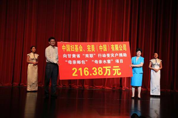 近年来,在中国妇女发展基金会的协调支持下,完美(中国)有限公司已累计为我省捐助“母亲水窖”项目400余万元,帮助22个县市区、17个乡镇、31个行政村,已建和在建集雨水窖2074眼,小型集中供水工程8处,解决了2.38万群众的生产生活用水问题。今年岷县、漳县地震后,完善(中国)有限公司又积极响应中国妇基会为地震灾区捐助“母亲邮包”的倡议,为我省捐助了价值160余万元的“母亲邮包”。