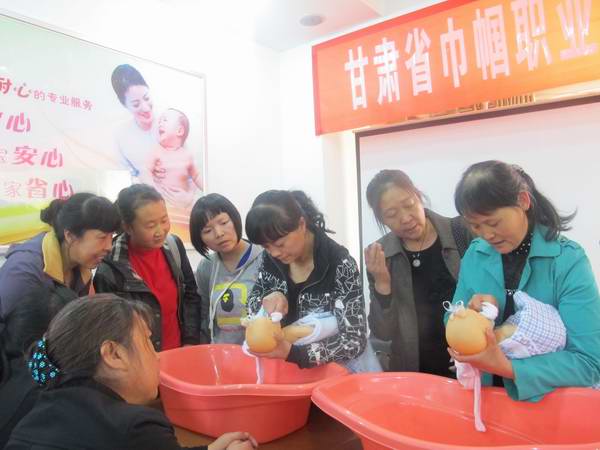 培训班上,讲解了育婴员国家职业标准的基本特点与要求,进行了相关法律法规与职业道德、0-3岁婴幼儿的发育规律与特点、婴儿早期护理的方法技巧、婴幼儿营养烹饪喂养技巧及注意的问题、玩具的鉴别选择和合理利用、婴幼儿教养环境的创设原则与范例等内容的培训。培训将理论知识和技能操作相结合,帮助学员真正掌握育婴员的各项技能,为从事“陇原月嫂”夯实理论知识和技能基础。