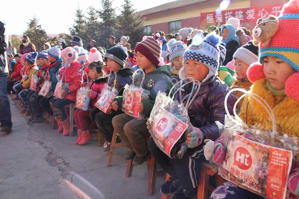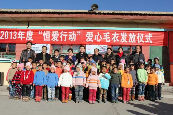 12月30日上午,天祝县打柴沟镇火石沟小学暖意浓浓,省妇联和恒源祥集团在这里举行甘肃省2013年度“恒爱行动”爱心毛衣发放仪式。
