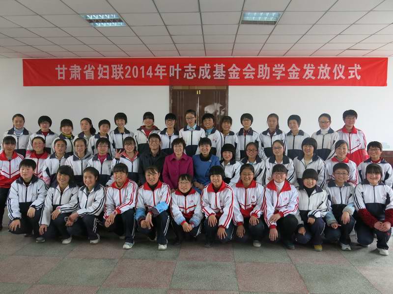 近日,省妇联分别在兰州大学、兰州市皋兰一中、平凉市静宁一中举行了2014年叶志成基金会助学金发放仪式,受助学生和学生家长200多人参加了助学金发放仪式。省妇联儿童部代表叶志成基金会为三所学校的74名高中生、20名大学生每人发放助学金2000元,共发放助学金18.8万元。