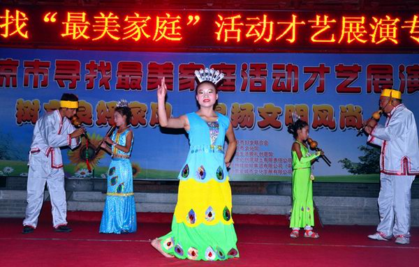 平凉:“最美家庭”才艺展演精彩纷呈近日,由平凉市妇联主办、市文化馆承办的平凉市寻找“最美家庭”才艺展演活动举办,32户家庭、100多名家庭成员参加展演。选手中年龄最大的已近八旬,最小的只有五岁。此次才艺展演为期4天,节目风格新颖、贴近生活、广接地气,吸引了众多市民前来观看。舞蹈、歌曲、戏曲、太极扇、诗歌朗诵……“最美家庭”在舞台上展示了精彩的才艺,展现了平凉广大家庭追求健康、文明、乐观、向上的家风家貌,同时也传递了崇德向善、争做“最美家庭”的正能量。