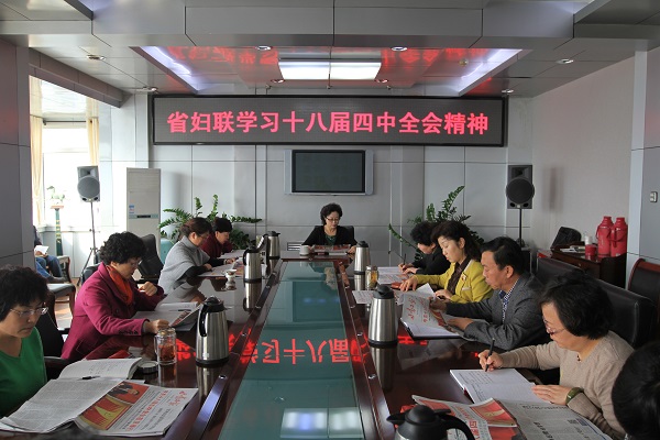 10月27日,省妇联召开中心组扩大会议,认真传达学习了党的十八届四中全会精神,并结合妇联实际,研究部署贯彻落实工作。