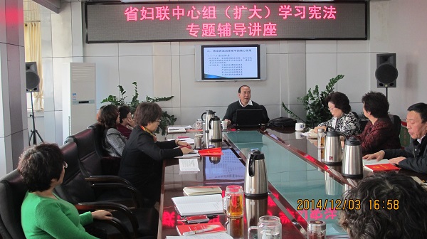 为了深入学习宣传贯彻党的十八届四中全会精神,积极构建“学法、尊法、用法、守法”的机关法治环境,进一步提升法治建设的高度和广度,在第一个“国家宪法日”到来之际,省妇联特邀省委党校宪法专家张佺仁教授做了《加强宪法实施,树立宪法权威》的专题辅导讲座。