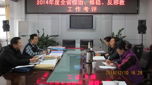 近日,省综治委第六考核组来到省妇联,对我会2014年综治、维稳、反邪教工作进行考核。考核组听取了省妇联的工作情况汇报,查阅了相关的文件资料,并同与会人员进行了座谈交流。