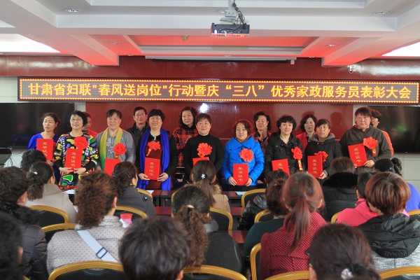 3月7日,省妇联庆“三八”春风行动暨优秀陇原家庭服务工作者表彰会在兰州举行。省妇联巡视员管春梅出席会议,并为2014年度“十星级陇原月嫂”、“优秀陇原育婴员”、“优秀家庭服务员”颁发了荣誉证书。
