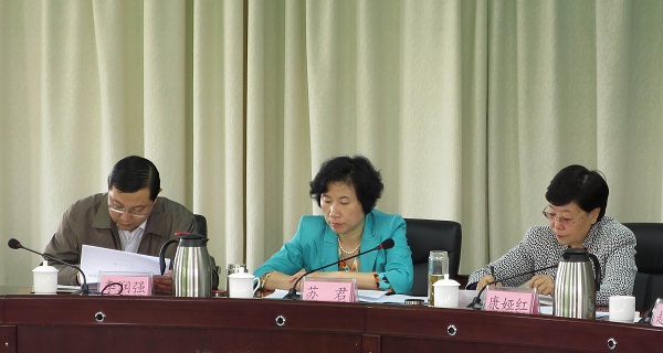 5月22日,省妇联党组书记、主席苏君与参加全省妇联干部依法履职能力提升培训班的学员座谈。