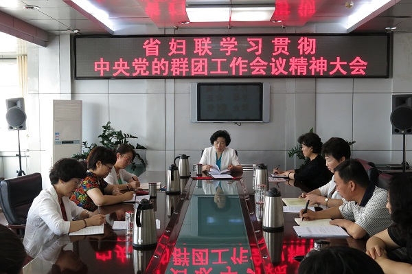 7月9日,省妇联召开全体干部职工大会,传达学习贯彻中央党的群团工作会议精神。省妇联党组书记、主席苏君主持会议。