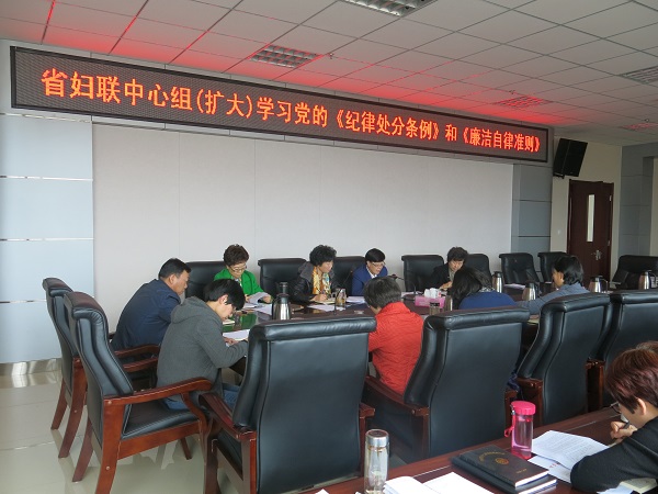 10月30日,省妇联召开中心组(扩大)会议,专题学习《中国共产党廉洁自律准则》(以下简称《准则》)和《中国共产党纪律处分条例》(以下简称《条例》),省妇联中心组成员、机关全体党员干部及下属事业单位负责人40多人参加学习。