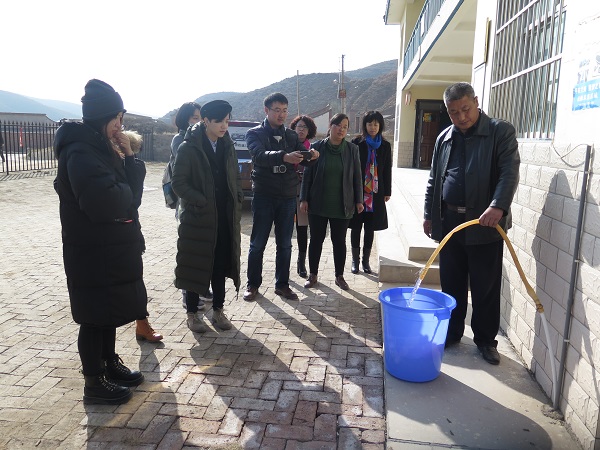 古浪县黄羊川镇张家墩村位于我省河西走廊东端,腾格里沙漠南缘,属于干旱山区,年降雨量只有300多毫米,但蒸发量却高达2000多毫米。李霄云和观察团成员们实地走访了张家墩村3户村民,详细了解生活用水情况。72岁的金万秀老人告诉大家,由于她身体不好,常年需要去镇上看病,家里生活一直很困难,平时生活用水主要依靠收集屋顶上的雨水和雪水,干旱季节就要购买从10公里以外拉来的河水,平均每个月买水的费用在50元左右,一年下来将近600元,这对老两口来说是一笔不小的支出。黄羊川镇党委书记张斌介绍,县上已经决定将张家墩村的76户村民全部搬迁到山下生活方便的地方。中国妇女发展基金会的代表表示将为移民安置点捐赠修建小水工程,以后村民们再也不会为吃水发愁了。