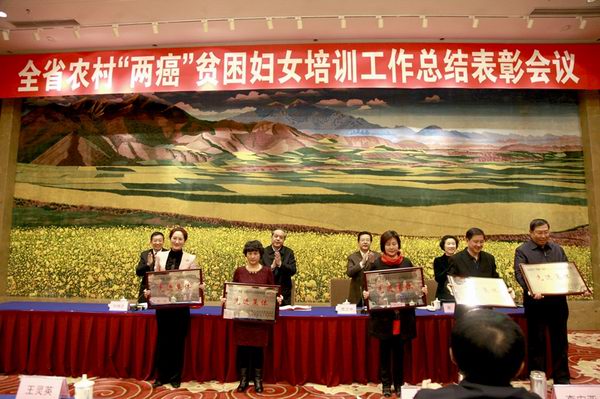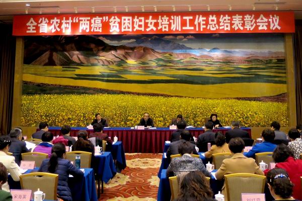 会议表彰奖励了在全省农村“两癌”贫困妇女培训工作中涌现出的先进集体和先进个人。庆阳市妇联介绍了“两癌”妇女培训工作经验,参加过全省农村“两癌”贫困妇女创业技能和康复能力培训班的学员代表王亚玲和丁翠萍作了大会发言。