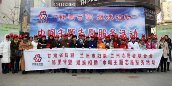 在第30个“国际志愿者日”来临之际,12月5日上午,甘肃省妇联、兰州市妇联、兰州市文明办在兰州市张掖路街道陇西路社区张掖路步行街共同启动了“邻里守望·姐妹相助”巾帼主题志愿服务活动,动员引导全省广大妇女积极参与巾帼志愿服务活动。省妇联党组成员、副主席王灵英出席了启动仪式。来自省、市、区、街道和社区五级妇联干部与广大巾帼志愿者一起开展了志愿服务活动。