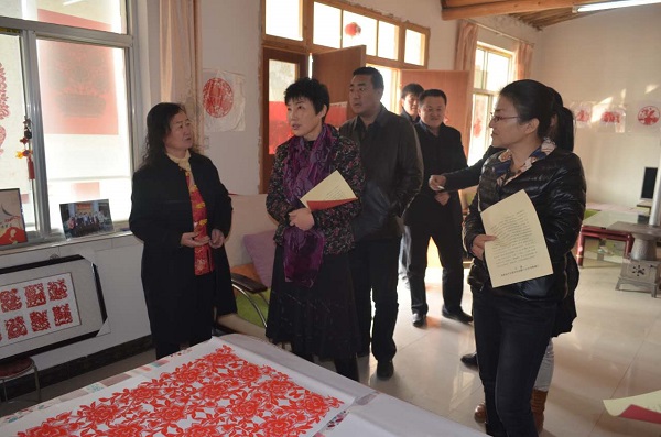 督查组一行在白银区四龙镇四龙村,实地查看了“爱心妈妈”结对及活动开展情况,并与村妇代会主任进行交谈,仔细询问了其参加培训的情况和收获。在王岘镇妇女手工编织创业就业示范基地,胡兰与基地负责人梁维珍亲切交谈,询问学员培训及剪纸作品销售情况,鼓励她不但要把剪纸作为民俗文化传承,而且要进一步拓宽销售渠道,使剪纸技术成为带动妇女增收致富的产业。在白银区妇女维权合议庭,督查组通过查看详实的书面材料,与办案法官交流等多种方式,详细了解了区法院落实两规划、保障妇女合法权益的实施情况。在区陇原巧手电商中心,胡兰指出要充分利用互联网优势,大力发展电子商务,打开巧手产品网络销售渠道,并建议市妇联适时组织妇联干部和“陇原巧手”赴陇南考察学习发展电商先进经验。
