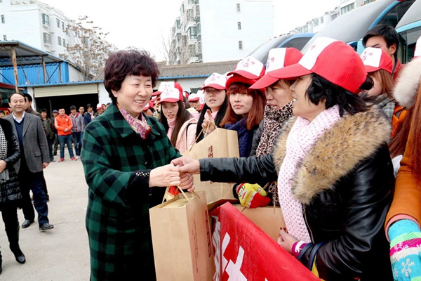 欢送仪式上,陇原妹代表作了感人肺腑的表态发言,礼县妇联还为每名赴京的陇原妹赠送了家乡特产苹果,发放了外出务工维权手册。
