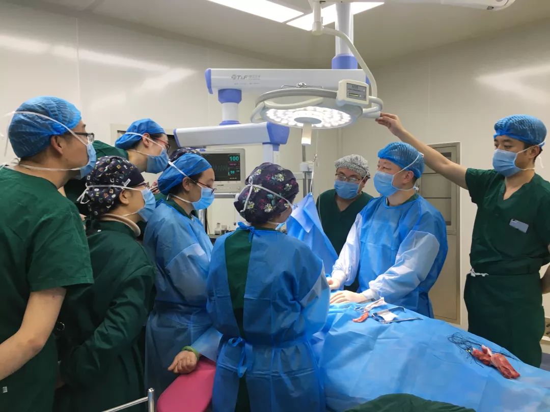 上海交通大学医学院附属新华医院乳腺外科学科带头人、主任医师、博士研究生导师韩宝三为患者进行手术。