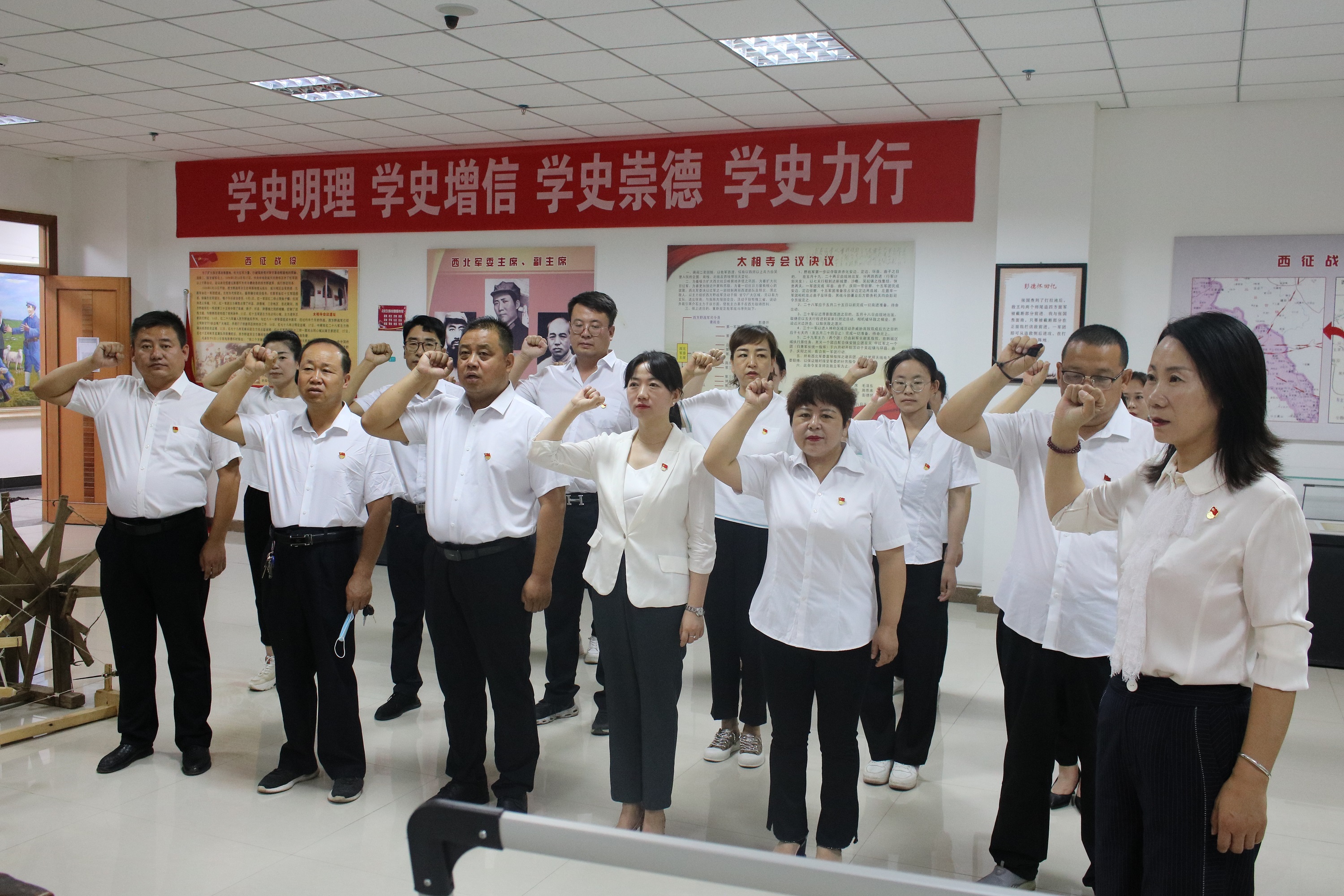 平川区妇联党支部联合区总工会党支部和团区委党支部组织全体党员在红军西征胜利纪念馆重温入党誓词。全体党员站在党旗前,举起右拳,庄严宣誓,“我志愿加入中国共产党,拥护党的纲领,遵守党的章程,履行党员义务,执行党的决定,严守党的纪律,保守党的秘密,对党忠诚,积极工作,为共产主义奋斗终身,随时准备为党和人民牺牲一切,永不叛党”,在鲜艳的党旗下,大家精神饱满、声音洪亮,一声声铿锵有力的誓词,一句句坚定信念的宣言,坚定了不忘初心,砥砺前行的坚强信念。随后在讲解员的带领下,参观了红军西征胜利纪念馆,接受了红色革命传统教育和党性的洗礼。