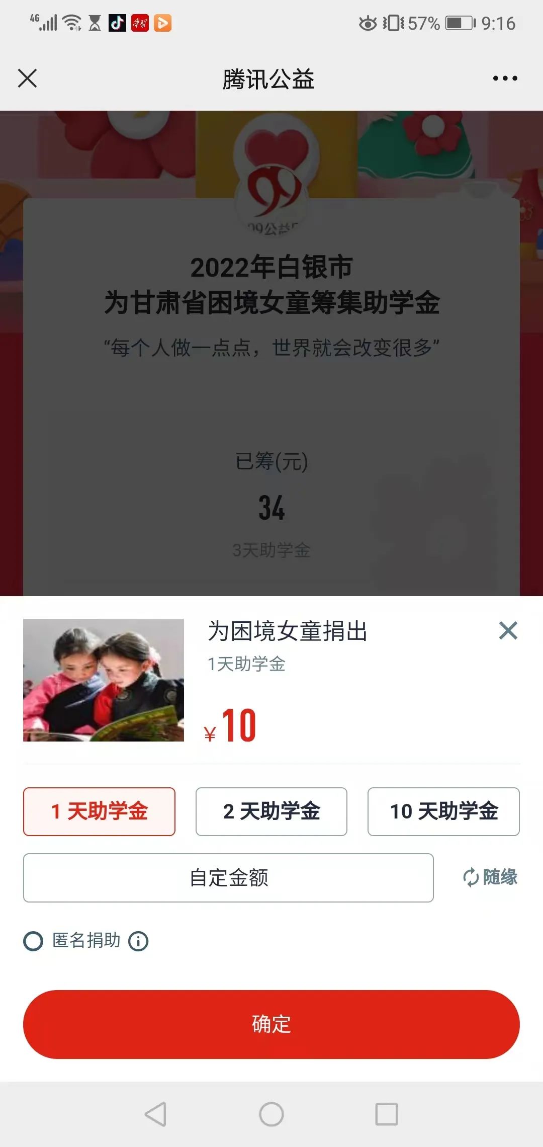 捐出9.9元