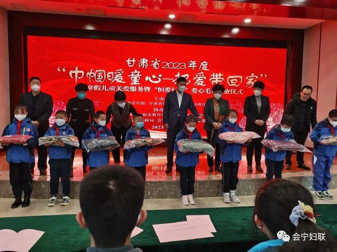 活动现场,中国儿基会携手永兴东润爱心企业向会宁县捐赠儿童服装2000件,省妇联向会宁县捐赠“恒爱行动”爱心毛衣300件,为困境儿童赠送了防疫物资爱心包,将爱心服装送到了每一位孩子手中,帮助他们温暖过冬。