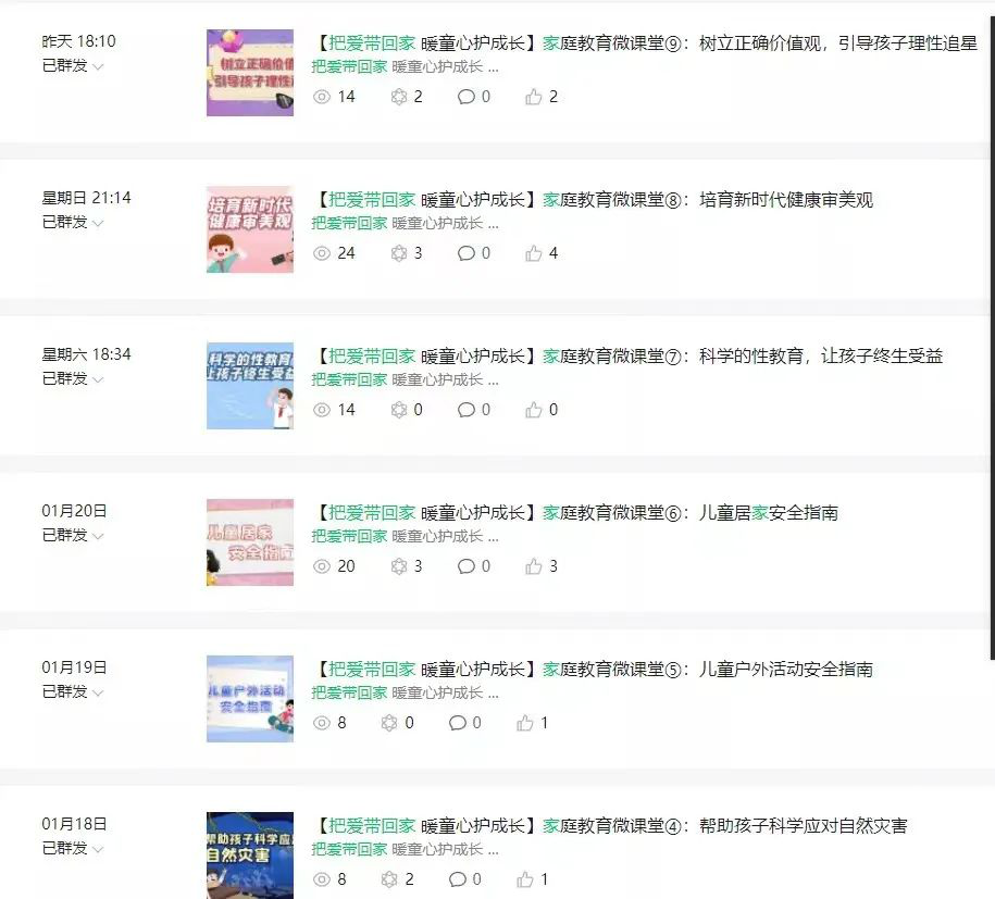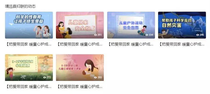 寒假期间,在靖远县妇联微信公众号、视屏号开设线上家庭教育微课堂,发布由全国妇联制作的“把爱带回家 暖童心护成长”系列家庭教育微视频课程13期。通过线上微课堂普及立德树人家庭教育理念和知识,提升家长依法教子、科学育儿能力。
