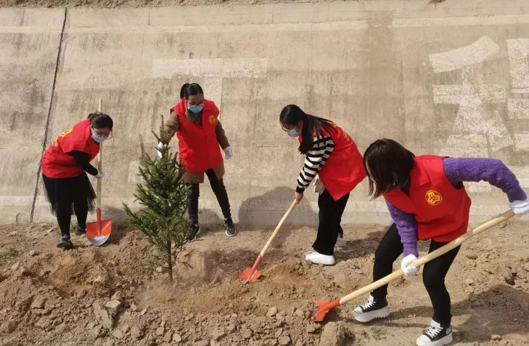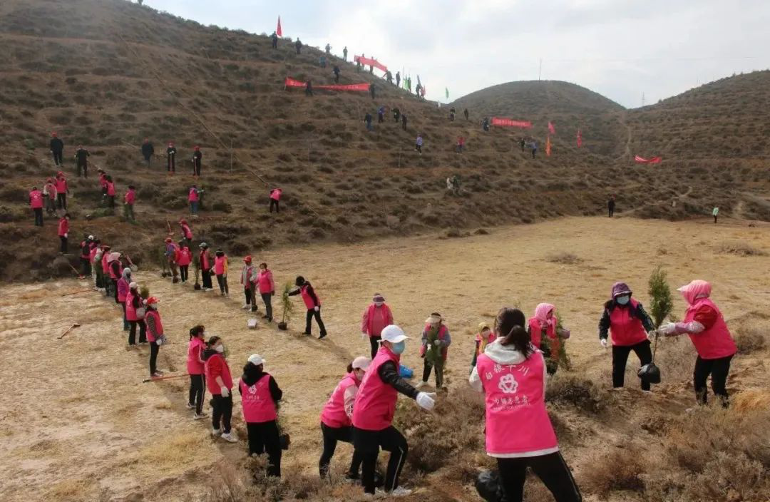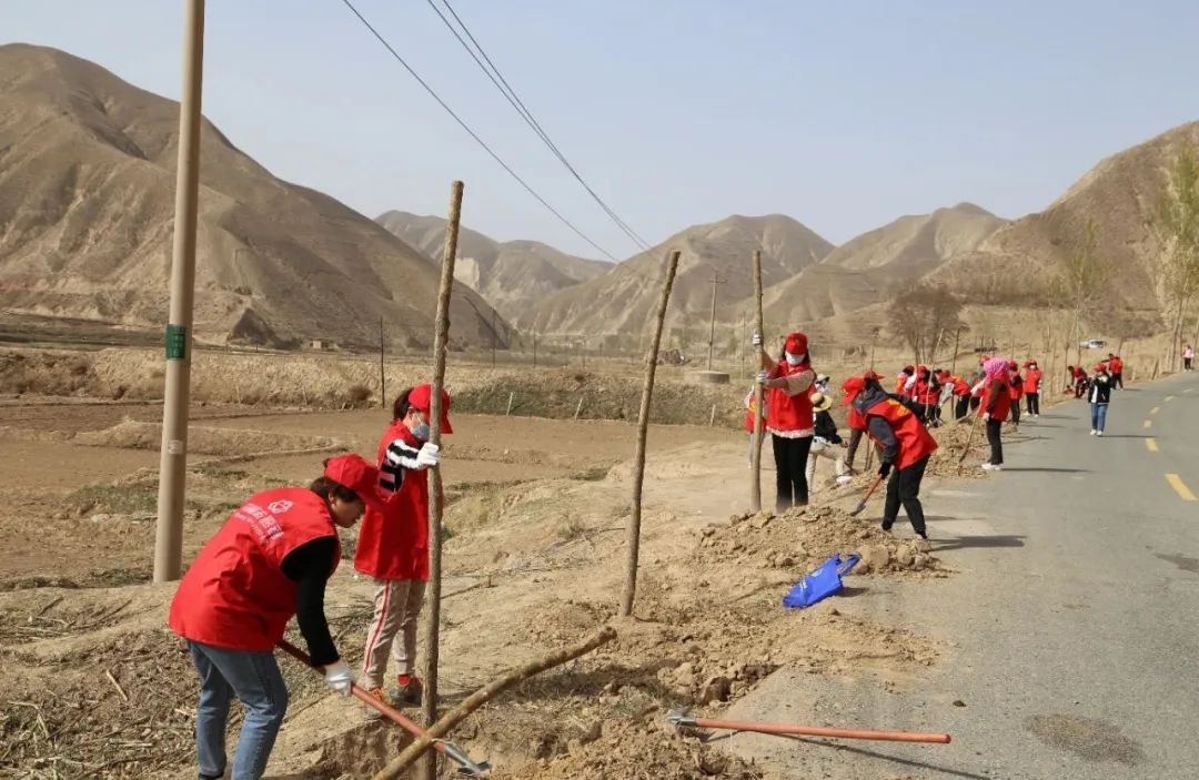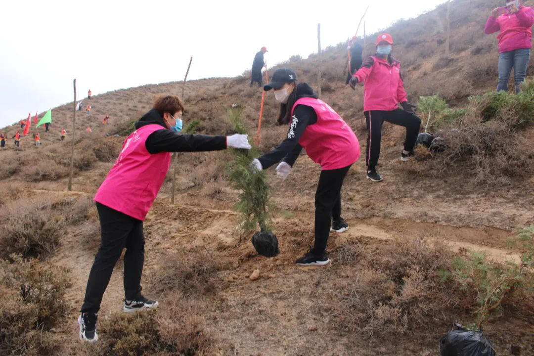 景泰县妇联组织巾帼志愿者开展春季植树活动。活动开始后,志愿者们鼓足干劲、不停不歇地栽种准备好的树苗,大家彼此配合,现场气氛热烈。
