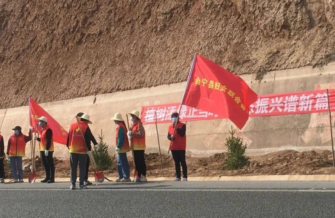 会宁县妇联组织巾帼志愿者在太平店镇开展义务植树志愿服务活动,为环境新增一片生机。植树现场,巾帼志愿者个个热情洋溢、干劲十足、兴致盎然。搬运树苗、挥锄挖坑、持铲培土,扶正踩实,有条不紊地种植树木。