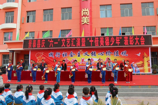 一是开展“学习雷锋,争做美德少年”主题实践活动。“六一”期间,县委宣传部、文明办、教育局、团县委、县妇联、关工委联合举办景泰县庆“六一”文艺汇演暨“十佳美德少年”表彰大会,激励广大未成年人崇尚先进、见贤思齐,传承和弘扬传统美德。开展“邮储银行杯”全县中小学生“践行社会价值观,共筑精彩中国梦”作文大赛活动,选出高中组、初中组、小学组一、二、三等奖及优秀组织奖260名学生进行表彰奖励。通过表彰活动,引导全县各中小学和广大师生以先进为榜样,组织实施24字核心价值观“人知人晓、人信人守、人行人动”行动,培养“立志向、有梦想、爱学习、爱劳动、爱祖国”的优秀接班人,进一步加强广大青少年社会主义核心价值观教育。各学校充分利用校园网络、广播、校报校刊、黑板报、阅报栏等途径,广泛宣传“十佳美德少年”的先进事迹,营造了学习美德少年、崇尚美德少年、争当美德少年的浓厚氛围。