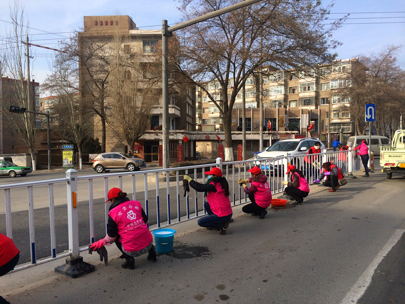 在公园路街道,数十名环保巾帼志愿者来到主干街道,认真打扫卫生,仔细擦洗护栏,并对乱张贴的广告进行了清理。