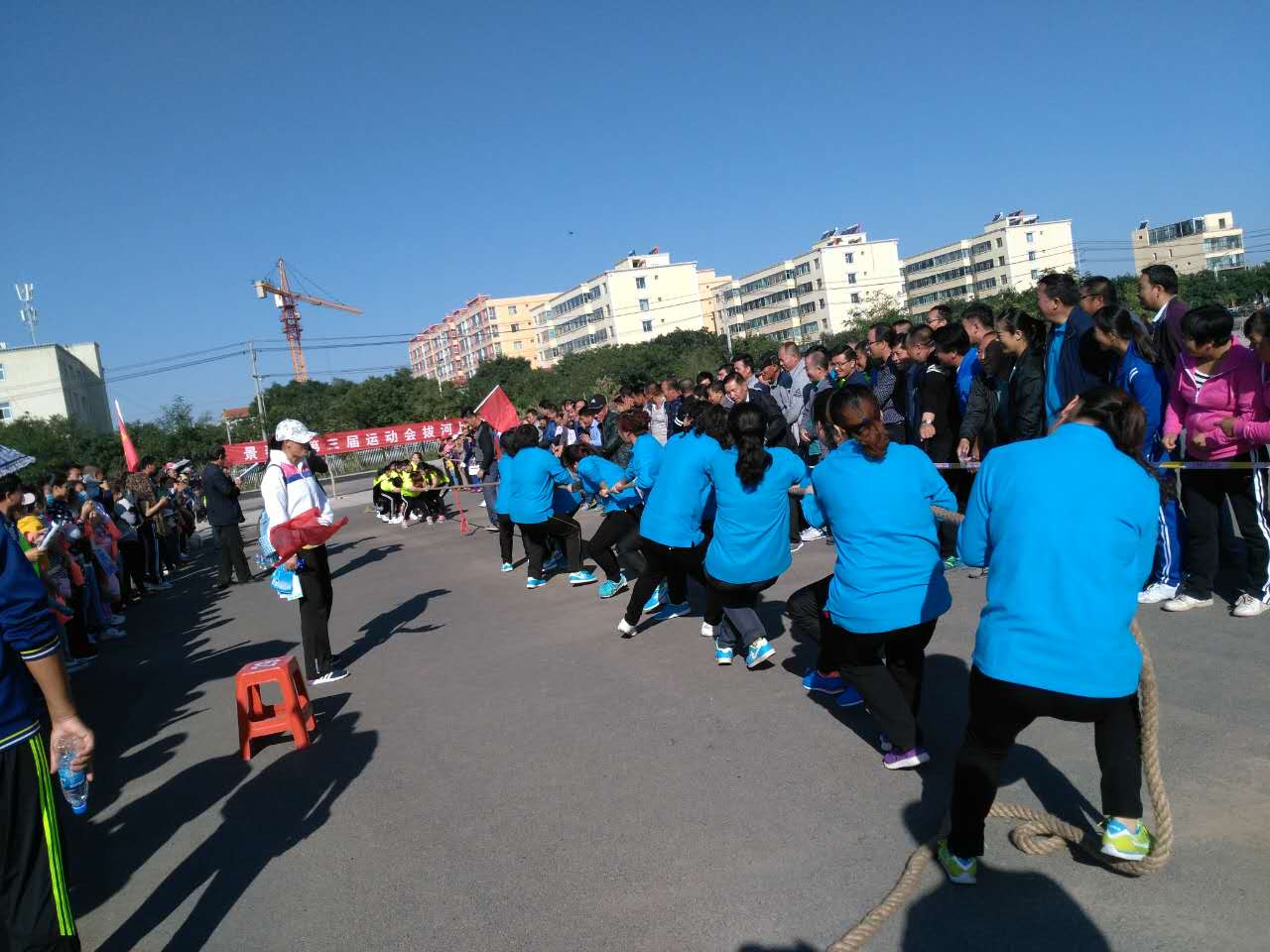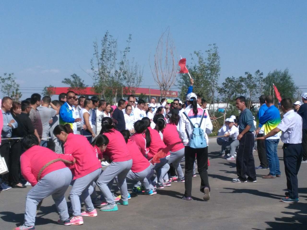 今天上午,拔河比赛结束,景电代表队一举夺魁,一条山代表队荣获亚军。