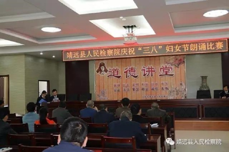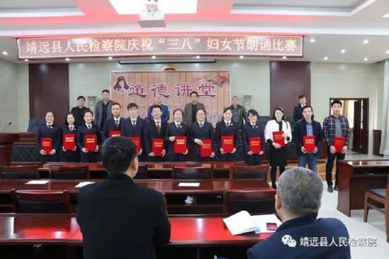 阳春三月,桃花盛开,为庆祝 “三八”妇女节,进一步丰富干警业余文化生活,缓解紧张繁忙的工作、生活压力,发扬“团结拼搏、开拓进取、与时俱进,无私奉献”的精神,3月8日上午,靖远县人民检察院举办了庆祝 “三八”妇女节朗诵比赛活动,全院干警参加了活动。