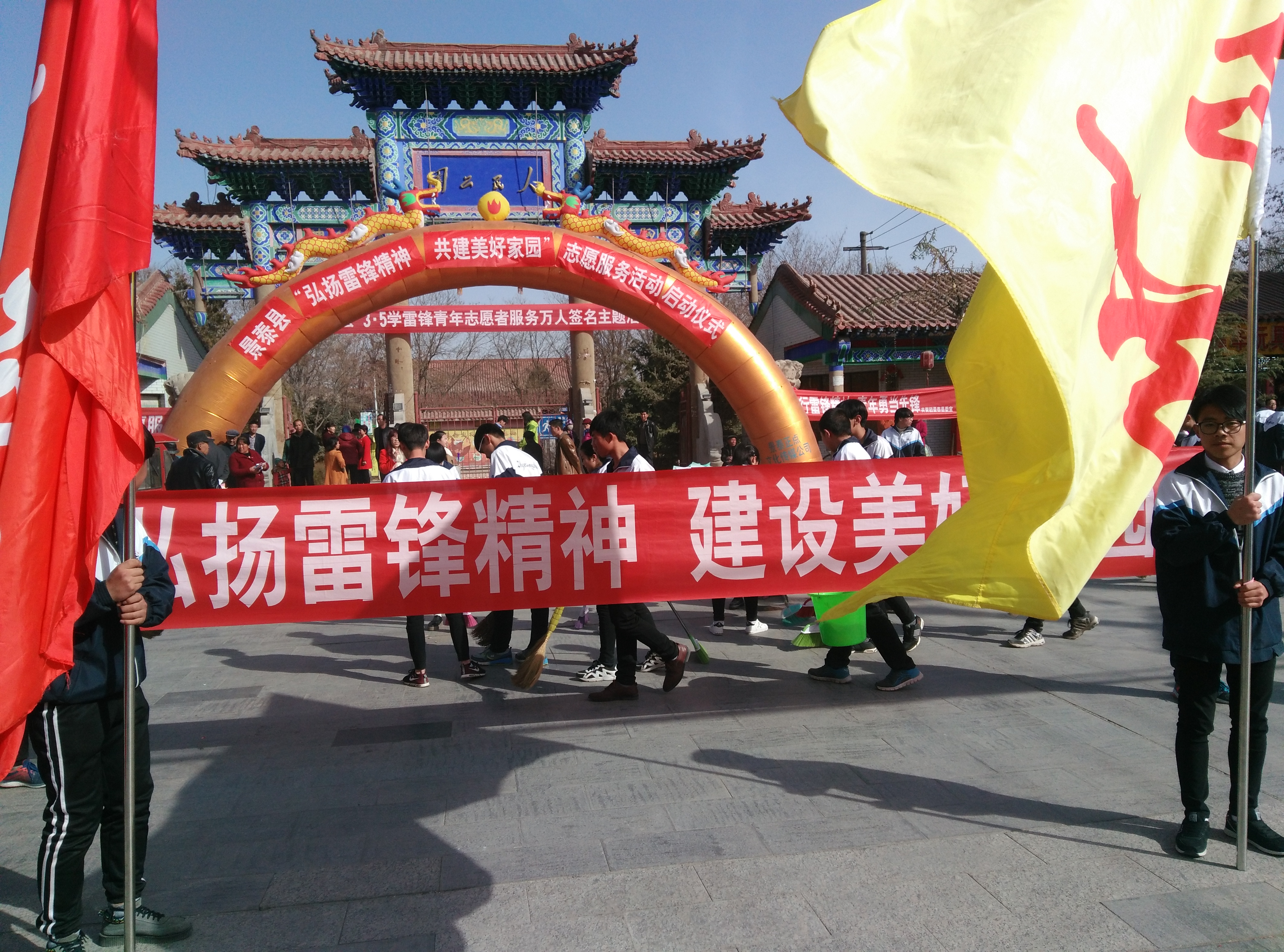 县委在景泰县人民公园门口开展以“传承雷锋精神 志愿服务耀景泰”为主题的学雷锋志愿服务活动启动仪式。开展“雷锋精神你我传递 魅力景泰从我做起”签名活动;开展义务诊疗、理发、卫生清理、法制宣传、入户照顾孤寡老人等志愿服务;组织志愿者清扫县城主干道街道卫生,清理小广告,集中发放《反家庭暴力法》、《禁毒法》、《妇联帮您走出去 家政是您致富路》等宣传材料;理发小分队开展免费义务理发;文明交通青年志愿者协助交警劝导、纠正行人、非机动车违法行为,宣传交通安全法律、法规知识。通过开展活动,积极学习雷锋精神,参与志愿服务,传递“奉献、友爱、互助、进步”志愿精神。