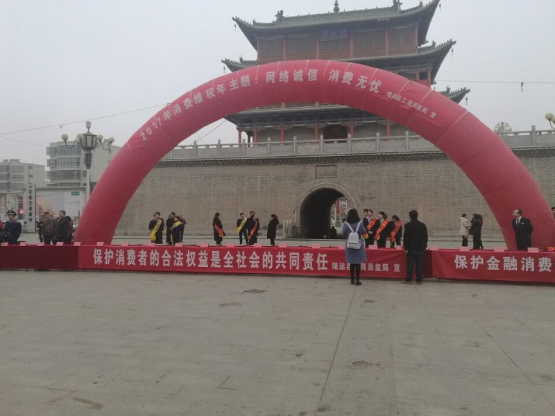 在国际消费者权益日来临之际,为营造良好的诚信经营、消费维权环境,3月15日,靖远县工商局、县妇联和各相关部门到钟鼓楼前开展消费者投诉、维权等法律法规知识普及宣传活动。
