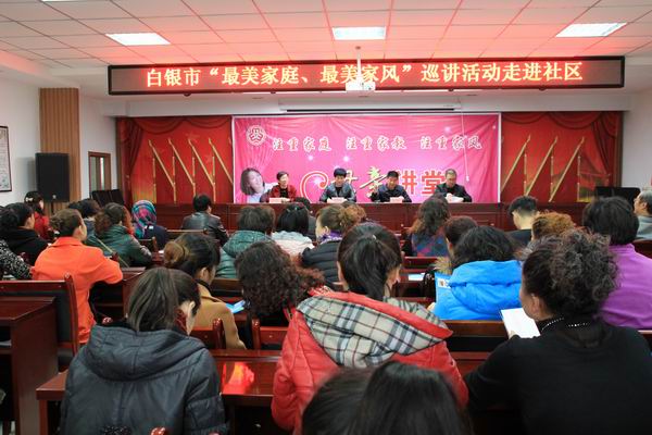 为宣传“最美”典型,弘扬传统美德,让广大家庭从“最美家庭 最美家风”中汲取家庭道德文明的巨大力量。3月23日上午,由白银市妇联举办的全市“最美家庭 最美家风”巡讲活动走进白银区四龙路街道,来自街道社区的120名干部群众现场聆听,感受了全市“最美家庭”的感人故事。