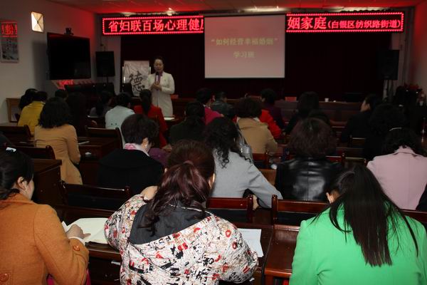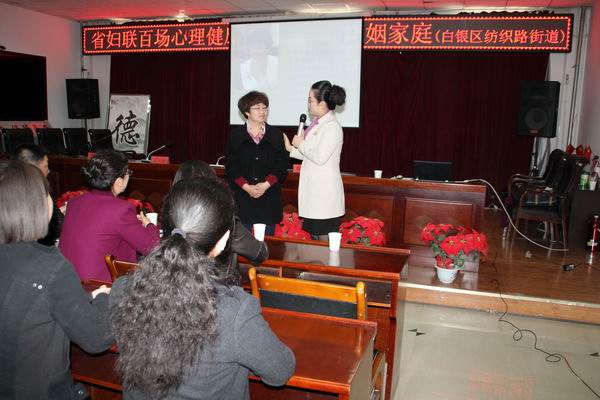 为了更好地关爱女性心理健康,为女性营造一个幸福、美满的生活与工作环境,3月30日上午,由省妇联主办的心理健康讲座走进白银区纺织路街道,来自街道各社区的100名妇女干部聆听了讲座。