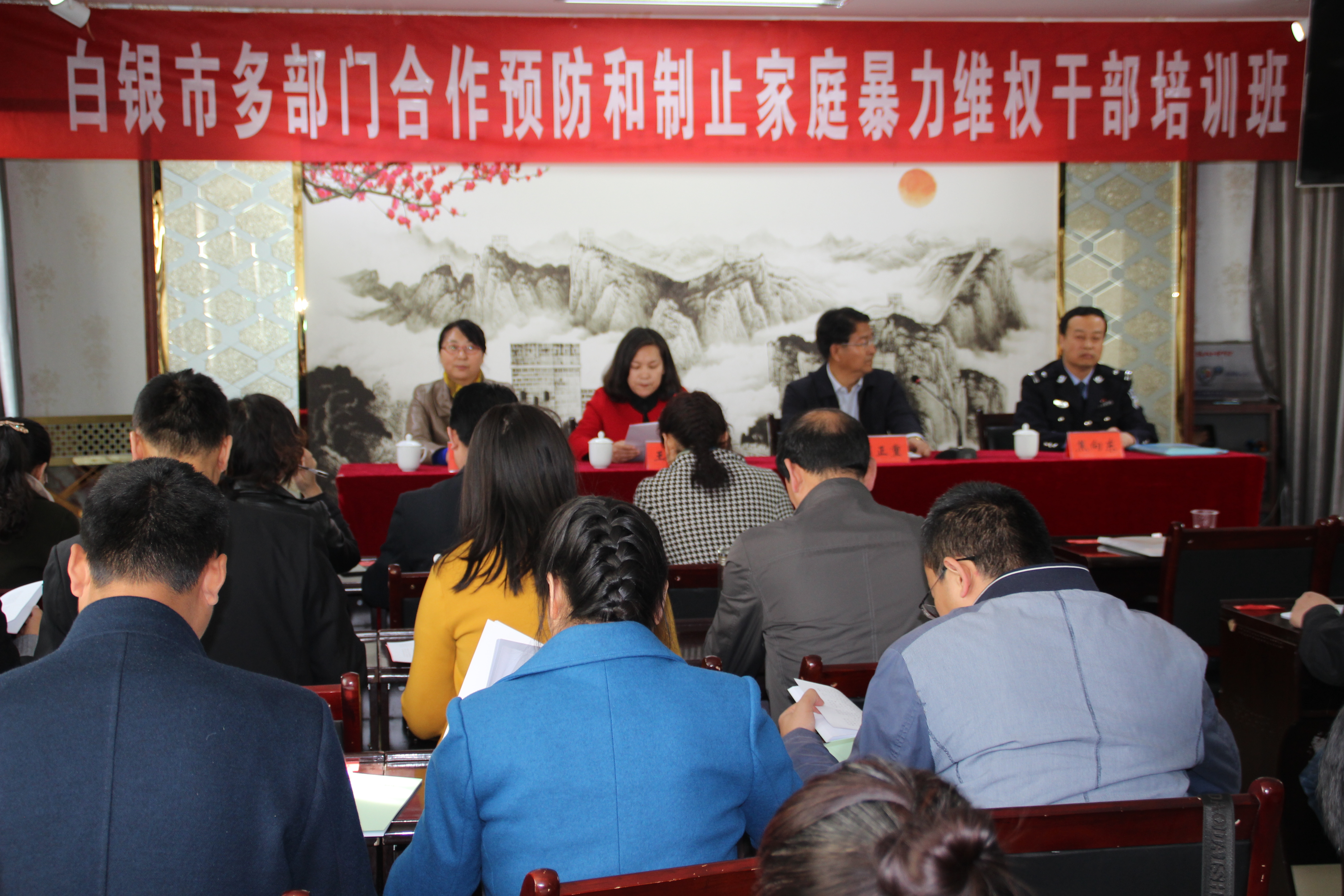 4月13日,白银市“多部门合作预防和制止家庭暴力维权干部培训班”在靖远县隆重开班,景泰县妇联、法院、检察院、教育、公安、民政、司法、卫计、综治办等九部门分管领导和维权干部参加了培训。