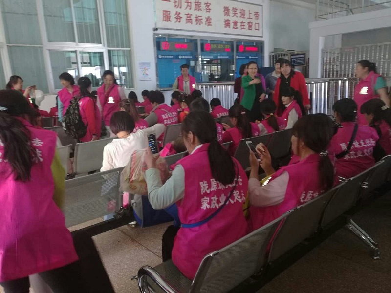 为贯彻落实中央经济工作会议、中央农村工作会议和省“两会”精神,不断强化劳务工作服务精准扶贫,深入开展“春风行动”,切实打造甘肃“陇原妹”巾帼家政品牌,带动更多农村贫困妇女增收致富。靖远县妇联立足实际、因地制宜,强化培训、提升素质,发展中介、拓展基地,着力打造“陇原妹”劳务输转基地,加大妇女劳务输转工作力度,多方拓展精准脱贫渠道,不断壮大妇女劳务经济,有效促进了妇女群众的持续增收。55名“陇原妹”满载希望浩浩荡荡踏上了开往北京的列车。
