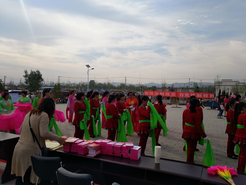 5月20日上午,靖远县妇联利用科技活动周在北湾镇富坪村文化广场开展增强法制观念 自觉抵制邪教宣传活动。