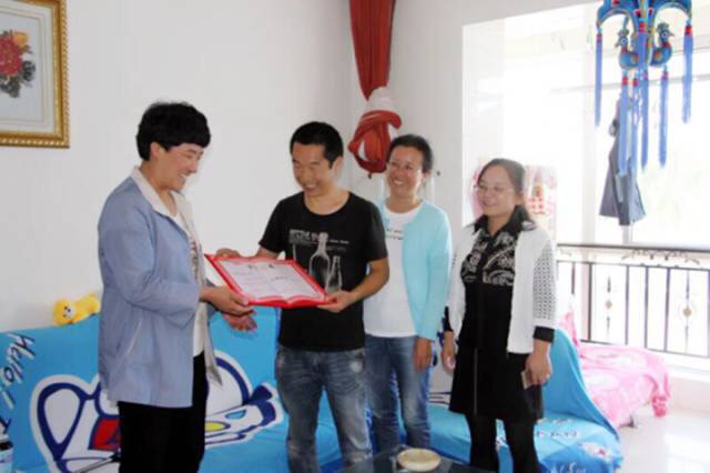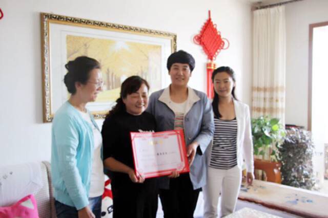 周育洁为全国“最美家庭”高秀家庭送去荣誉证书和奖杯