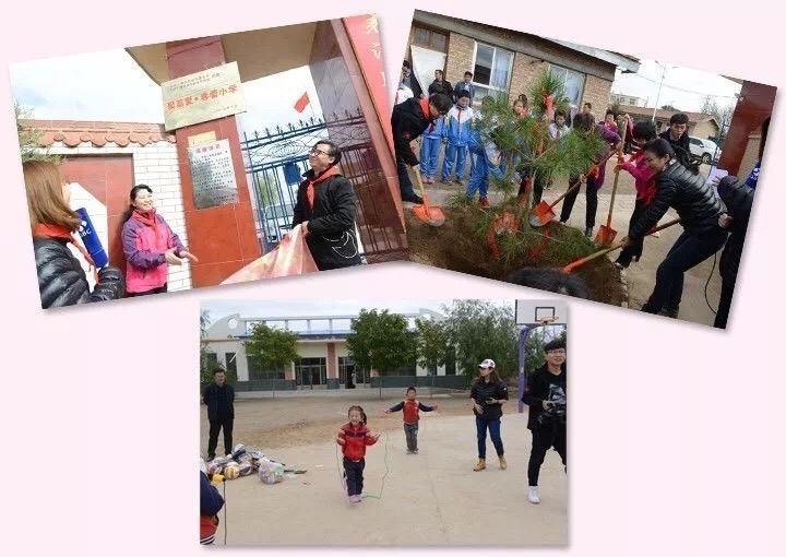 ⑧参加活动领导和嘉宾为中心小学揭牌、种植爱心树、向学生发放被褥床单、考察学校用水情况等活动。