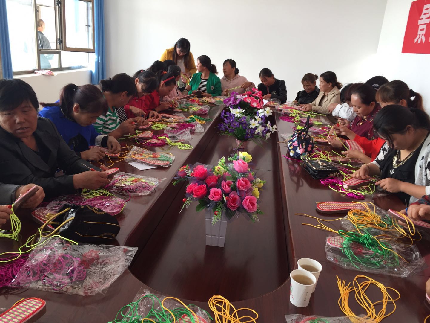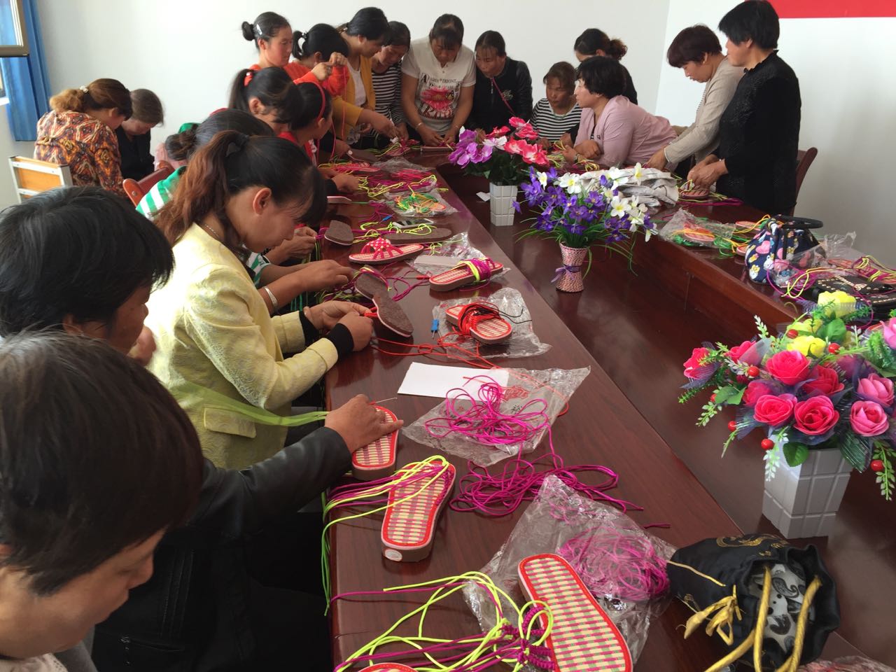 9月24日,草窝滩镇杨庄村举办钩编拖鞋培训班,杨庄、陈槽、西和等3个村的43名建档立卡贫困妇女参加培训。