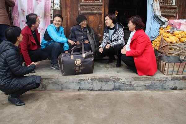 花村·顾家善不仅景色秀丽,民风淳朴,也是名副其实的长寿村,村上900多户人家70岁以上的老人就有93名,此次杜汉杰一行先后看望了6位平均年龄88岁的老人。每到一户,杜汉杰都满怀关切地询问老人们的生活状况,叮嘱家人要悉心照顾孝敬老人,并祝愿她们节日快乐,健康长寿。在今年已经101岁的魏宝英老人家中,看到老人精神矍铄,杜汉杰高兴地拉着她的手嘘寒问暖,当了解到老人因为后辈有病生活比较困难时,杜汉杰要求乡、村妇联主席要经常关心老人的生活和身体状况,让老人老有所养,安度晚年。