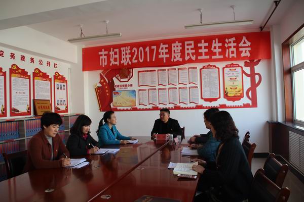 2月7日上午,白银市妇联党组召开2017年度党员领导干部民主生活会,党组成员紧扣认真学习领会习近平新时代中国特色社会主义思想,坚定维护以习近平同志为核心的党中央权威和集中统一领导,全面贯彻落实党的十九大各项决策部署这一主题,对照《党章》和《准则》《条例》,紧密联系思想和工作实际,深入进行自我检查、党性分析,开展批评与自我批评。市党员教育培训中心主任陆斌同志、市纪委监察委干部任炜同志莅临指导会议,党组书记、主席杜汉杰主持会议。