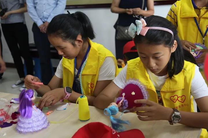 此次活动邀请了社区的“手工编织民间艺人” 进行讲授,老师们耐心地跟小朋友们讲解手工芭比娃娃、发卡、手链的制作。小朋友们争先恐后地开始制作,有的裁剪、有的缝补、有的填充、有的粘贴,大家纷纷按着自己的想法进行创作,不一会儿,一个 个漂亮的芭比娃娃、发卡、手链在孩子们的手中诞生了,看着自己亲手制作的手工作品,孩子们相互展示,互相分享着喜悦。