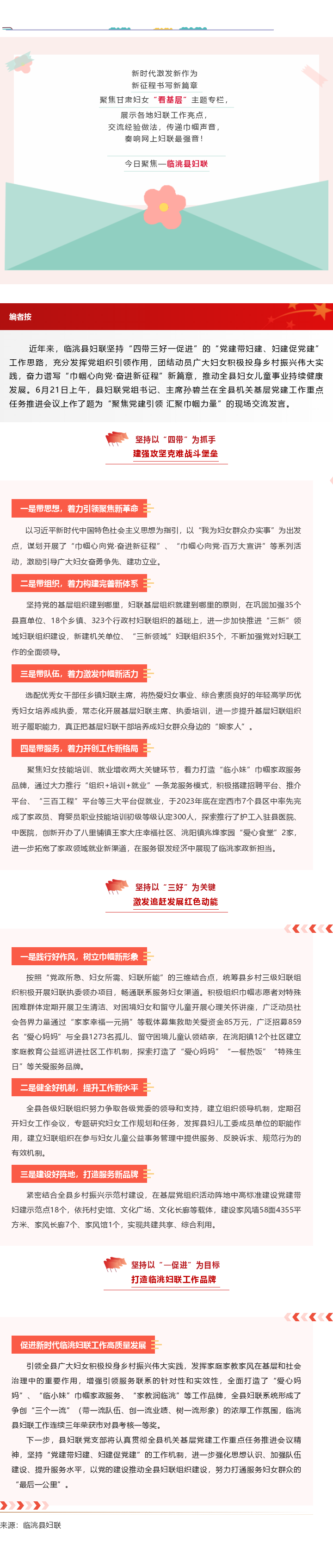 看基层 | 临洮县妇联坚持“四带三好一促进”推动党建工作迈上新台阶