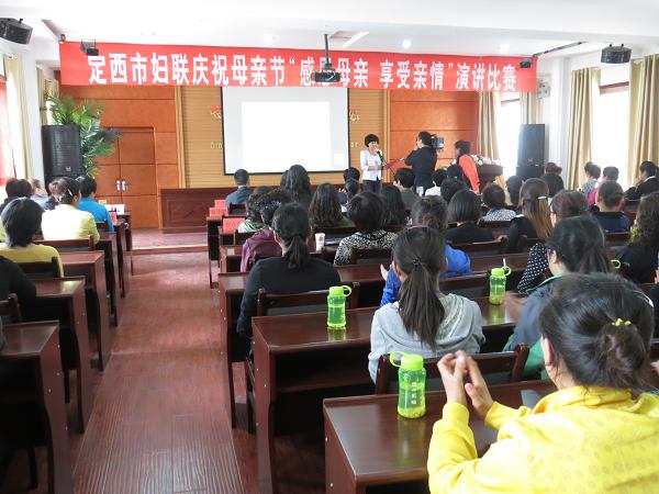 为了进一步弘扬中华民族孝亲敬老的传统美德,在全社会营造关爱母亲、歌颂母亲、热爱母亲的浓厚氛围,5月11日,定西市妇联在市妇女创业中心举办“感恩母亲 享受亲情”演讲大赛。来自全市7各县区15名选手参加了比赛。市直单位妇委会、电大学生、部分学生家长及市妇联全体干部等100余人聆听了演讲。